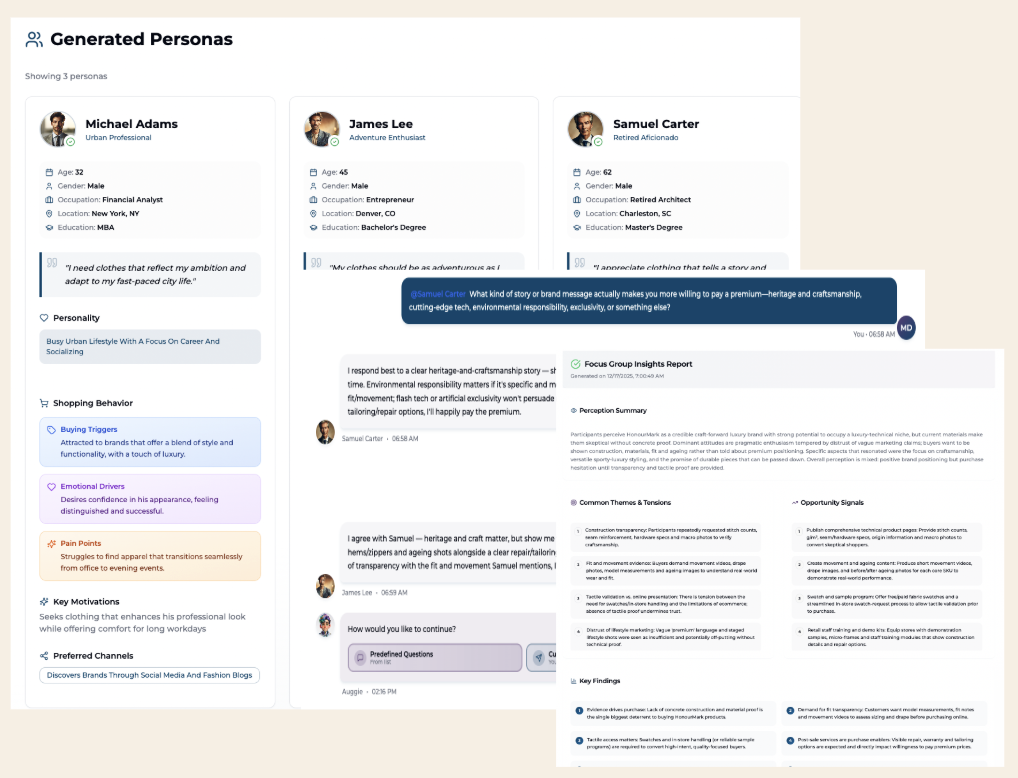 Currently in Private Beta, the Auggie™ platform enables brands to talk to and engage with virtual customers and target audiences. The platform creates experiences that mirror real‑world motivations, emotions, and decision‑making. By doing so, it gives brands direct access to insights and experiences that would otherwise require costly, slow, and static research methods.